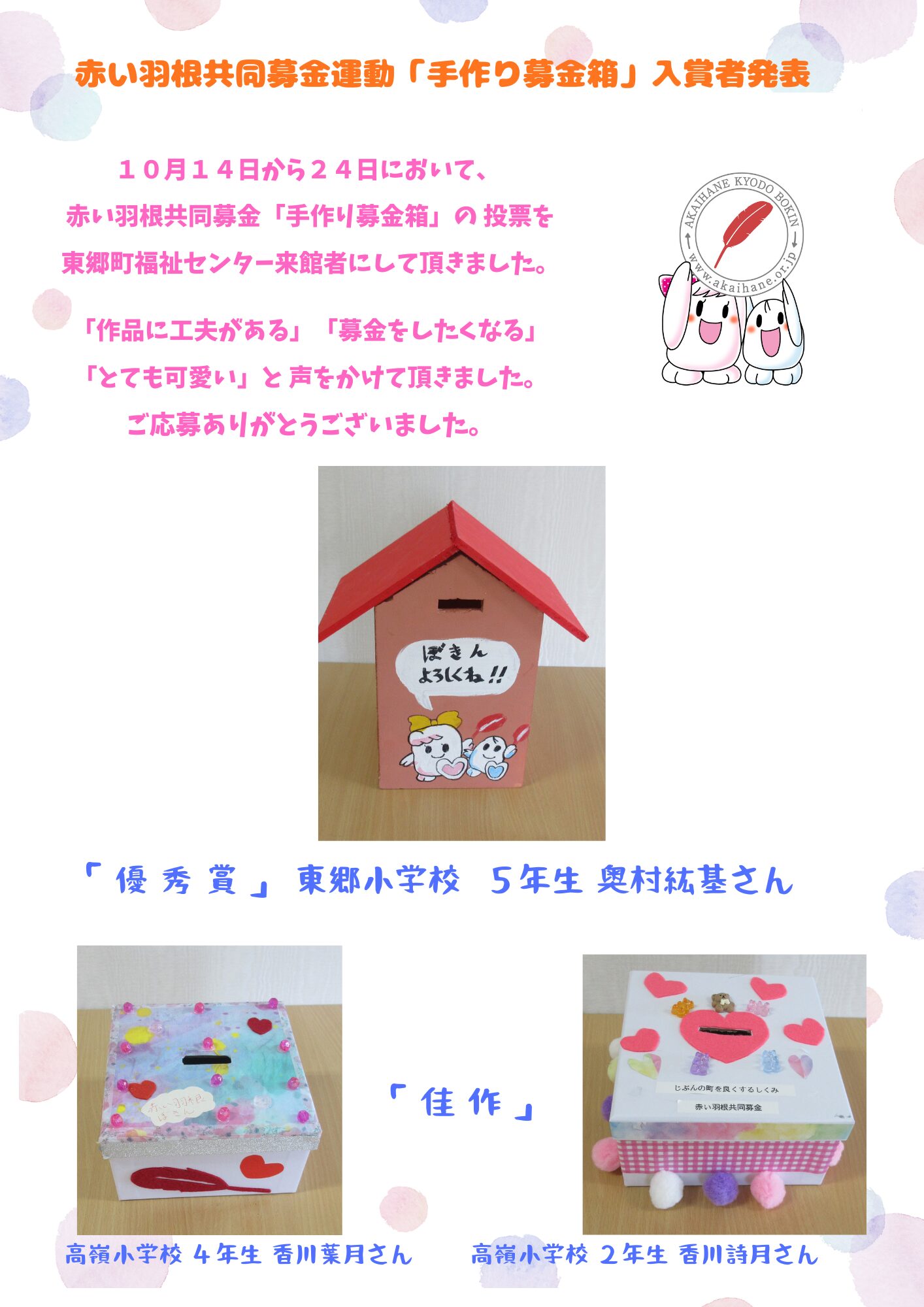 赤い羽根共同募金「手作り募金箱」入賞者発表!!!